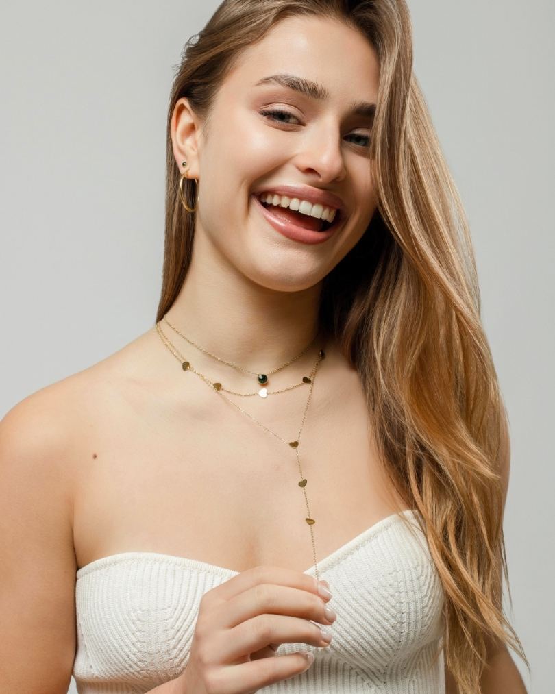 ¿Qué las hace waterproof? Usamos un proceso de recubrimiento en oro 18k de última generación llamado PVD (Depósito Físico de Vapor), que es 10 veces más resistente que los recubrimientos tradicionales. Esto asegura que nuestras joyas mantengan su color y brillo a lo largo del tiempo, permitiéndote lucirlas sin preocuparte por su durabilidad.