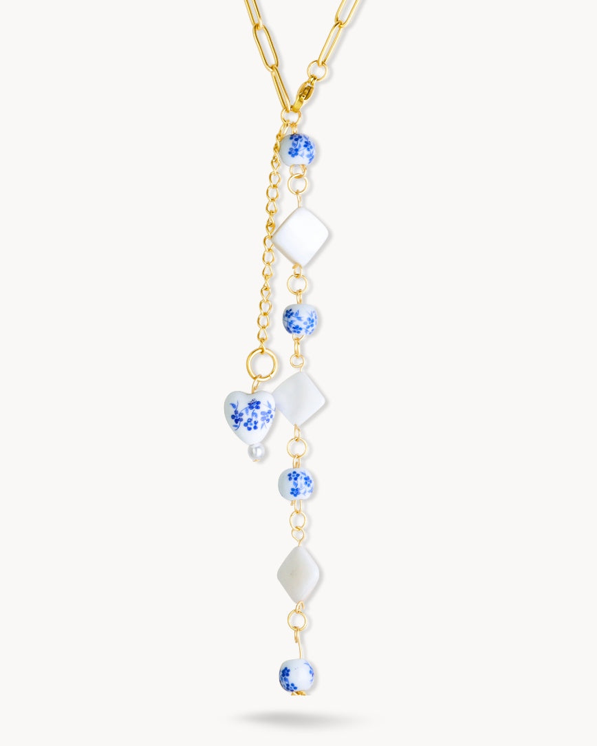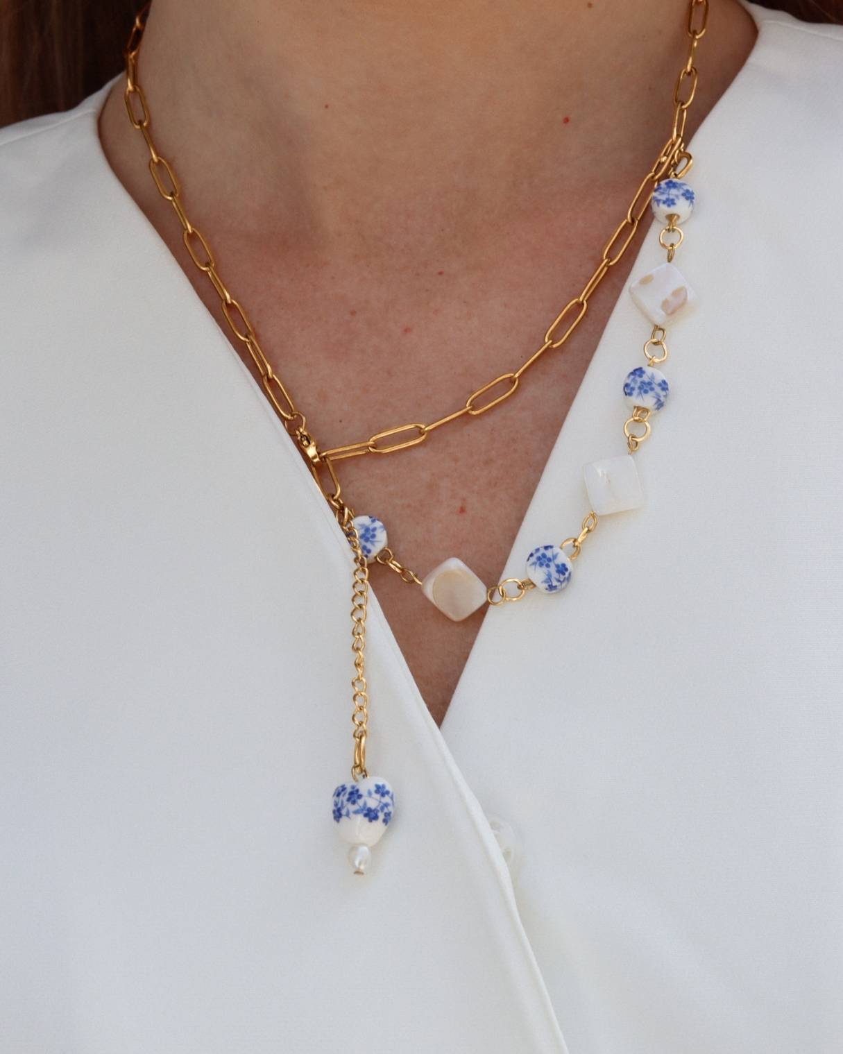 สร้อยคอเส้นนี้ได้รับแรงบันดาลใจจากความงามแบบเมดิเตอร์เรเนียนของแคว้นโพรวองซ์และความสง่างามแบบนอร์ดิก สวมใส่ได้หลากหลายสไตล์ โดดเด่นด้วยรายละเอียดเซรามิกเพ้นท์มือ สามารถสวมใส่เป็นสร้อยคอแบบโชกเกอร์ หรือจะจับคู่จี้ชิ้นหนึ่งกับอีกชิ้นก็ได้ สร้างสรรค์สไตล์ที่เป็นเอกลักษณ์สำหรับทุกโอกาส