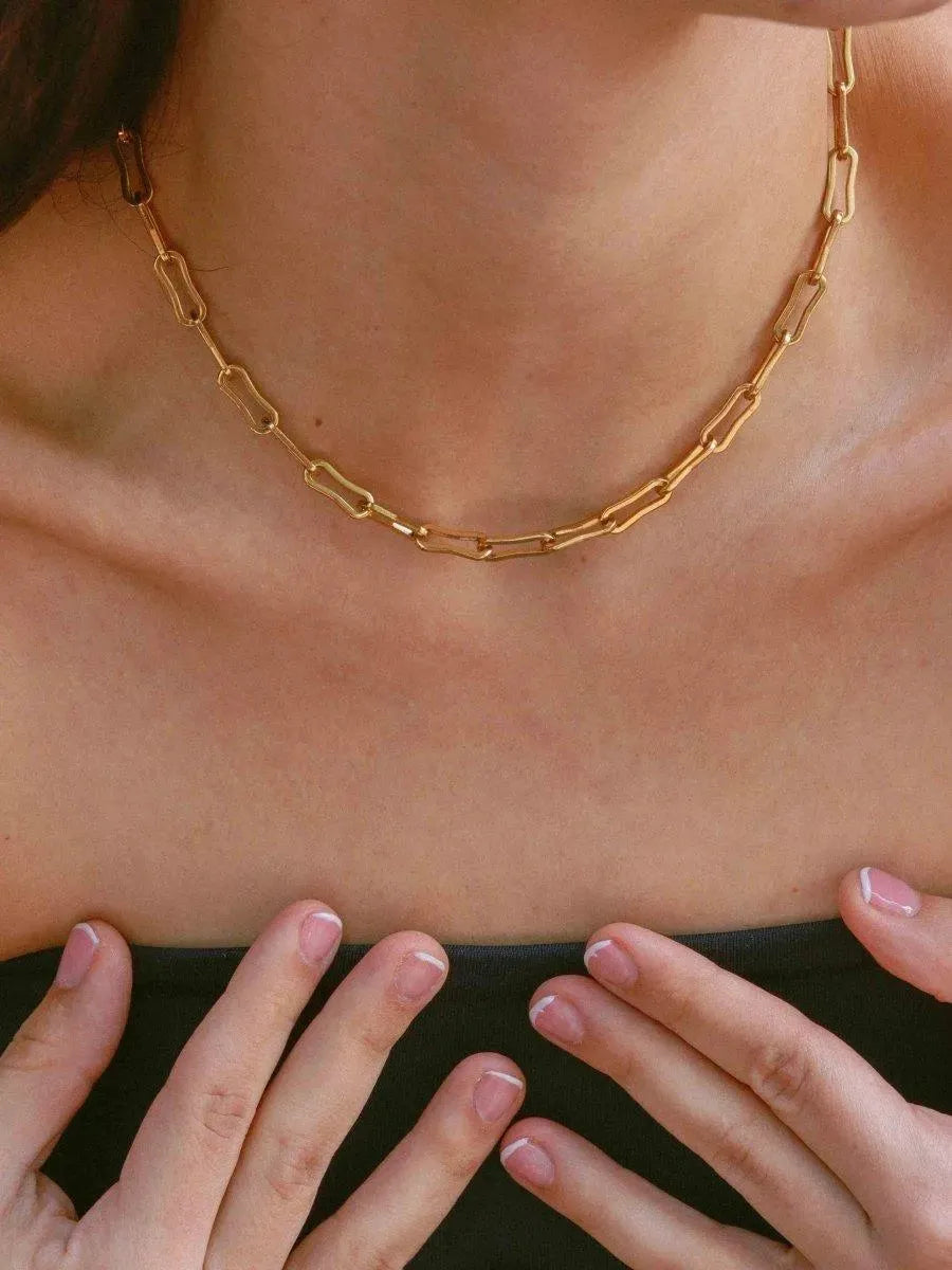 สร้อยคอ Vamilia โดดเด่นด้วยดีไซน์ข้อต่อชุบทองอันแข็งแกร่ง สะท้อนถึงความแข็งแกร่งและความเป็นหนึ่งเดียว สร้อยคอเส้นนี้เปี่ยมไปด้วยเอกลักษณ์เฉพาะตัว เหมาะสำหรับผู้ที่มองหาเครื่องประดับที่ผสมผสานสไตล์โมเดิร์นเข้ากับบุคลิกที่โดดเด่น