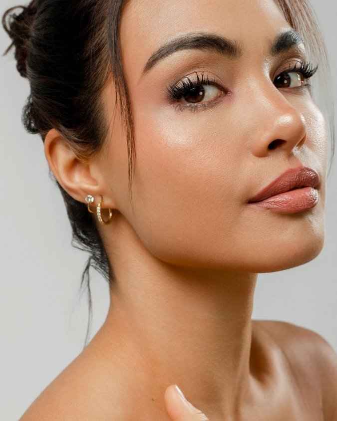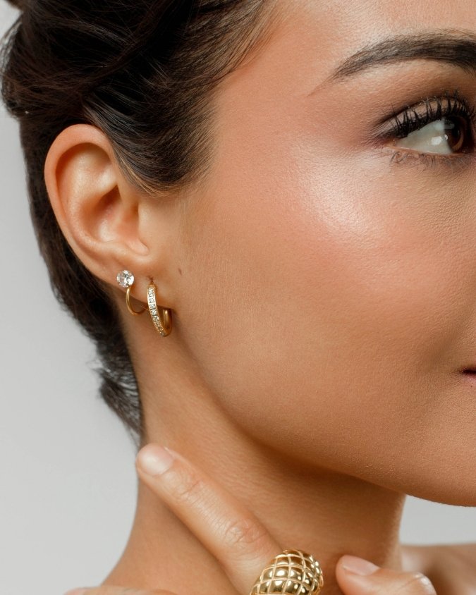 เลียนแบบการเจาะสองครั้งด้วยคริสตัลและทองคำ เหมาะอย่างยิ่งสำหรับรูปลักษณ์ที่สง่างามอย่างเป็นธรรมชาติ