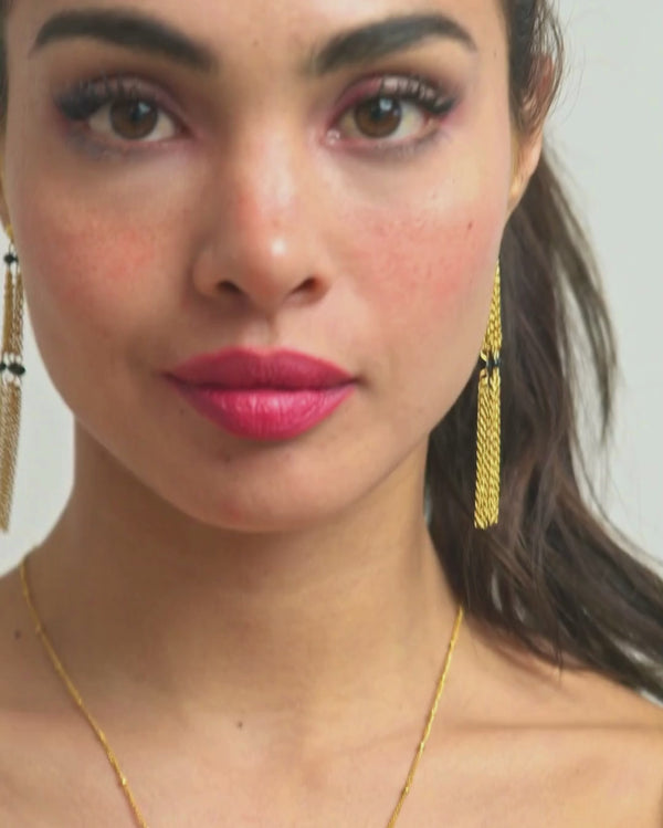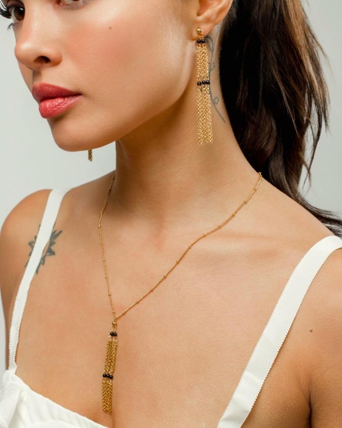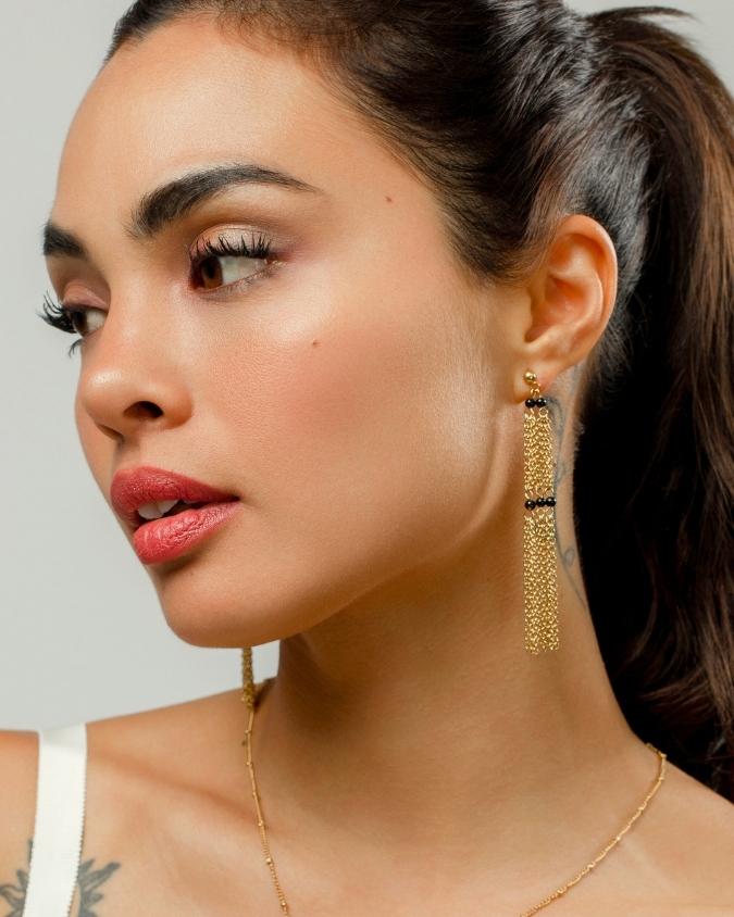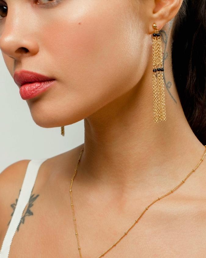ต่างหูระย้าโซ่คู่นี้ได้รับแรงบันดาลใจจากความสง่างามของสไตล์ฟลาเมงโก โดยสามารถจับภาพแก่นแท้ของการเคลื่อนไหวและความสง่างามได้