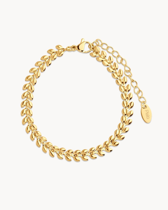 กำไลข้อมือประดับลวดลายใบไม้ชิ้นนี้เป็นสัญลักษณ์แห่งความอุดมสมบูรณ์ ได้แรงบันดาลใจจากความมั่งคั่งของต้นไม้ที่เขียวชอุ่ม การสวมใส่กำไลนี้จะเชื่อมโยงคุณกับความเจริญรุ่งเรืองของธรรมชาติ