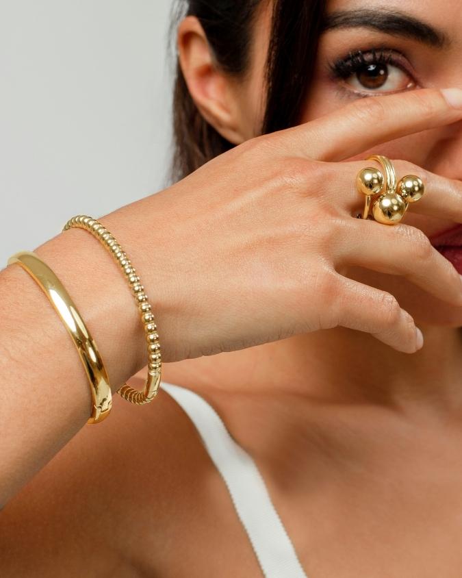 แรงบันดาลใจจากสัมผัสเหนือกาลเวลา สร้อยข้อมือเรียบหรูคลาสสิกเส้นนี้โอบรับข้อมือของคุณอย่างสง่างามและแข็งแกร่ง ดีไซน์เรียบง่ายให้ความรู้สึกทรงพลังและหรูหรา