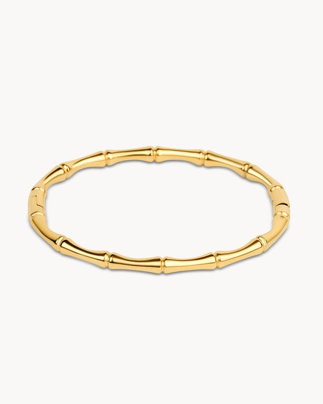 สร้อยข้อมือเส้นนี้ได้รับแรงบันดาลใจจากพื้นผิวธรรมชาติของไม้ไผ่ สะท้อนให้เห็นถึงการผสมผสานที่สง่างามระหว่างความแข็งแกร่งและความงามตามธรรมชาติ