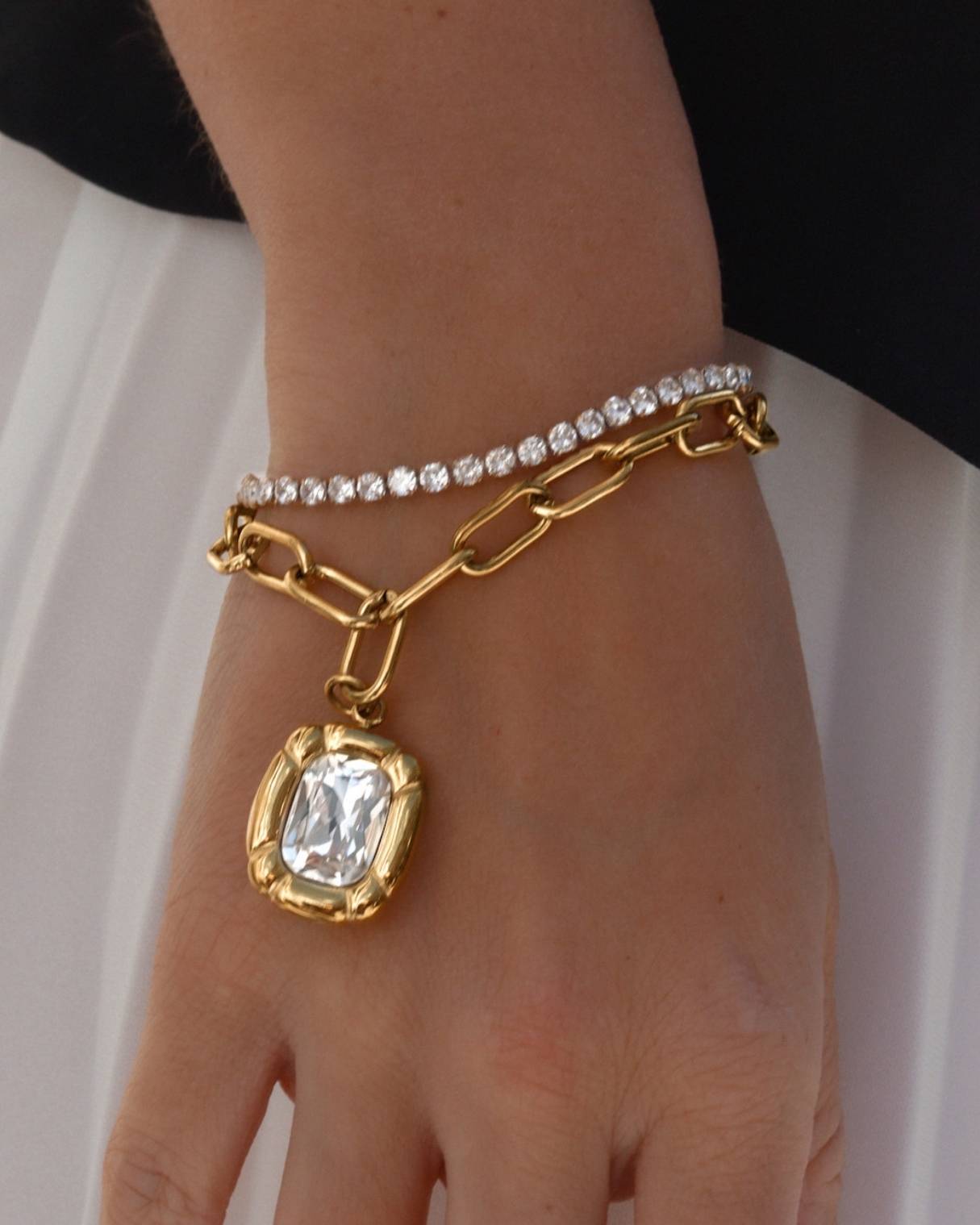 ด้วยดีไซน์ที่ได้รับแรงบันดาลใจจากความสง่างามเหนือกาลเวลา สร้อยข้อมือเทนนิสคู่นี้จึงเปล่งประกายระยิบระยับอย่างละเอียดอ่อนและสวมใส่สบาย ประกายแวววาวแต่ละประกายจะโอบล้อมคุณด้วยความรู้สึกหรูหราอย่างเรียบง่าย เหมาะสำหรับทุกโอกาส